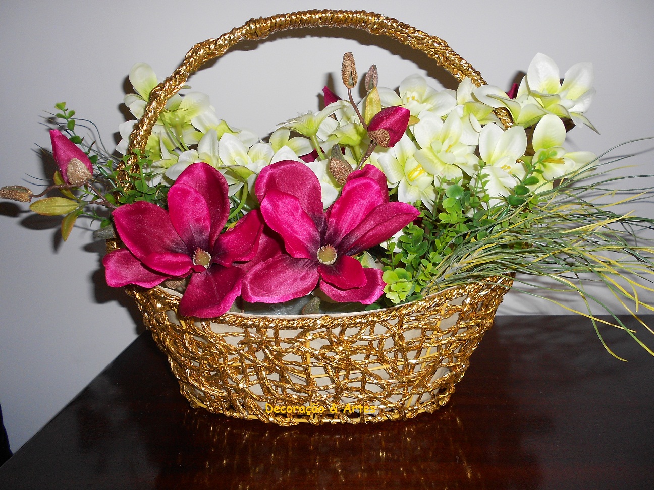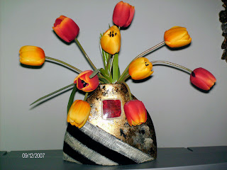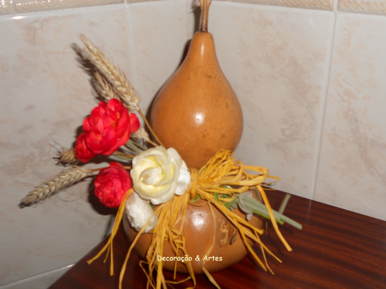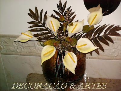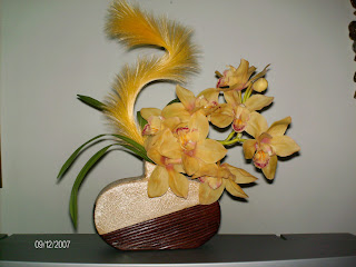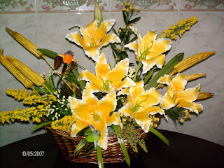 Não sei porquê, mas nesta altura que se aproxima o NATAL deu-me para me dedicar a fazer arranjos florais e como se vendem bastante bem aqui está mais um. .....................................................................................